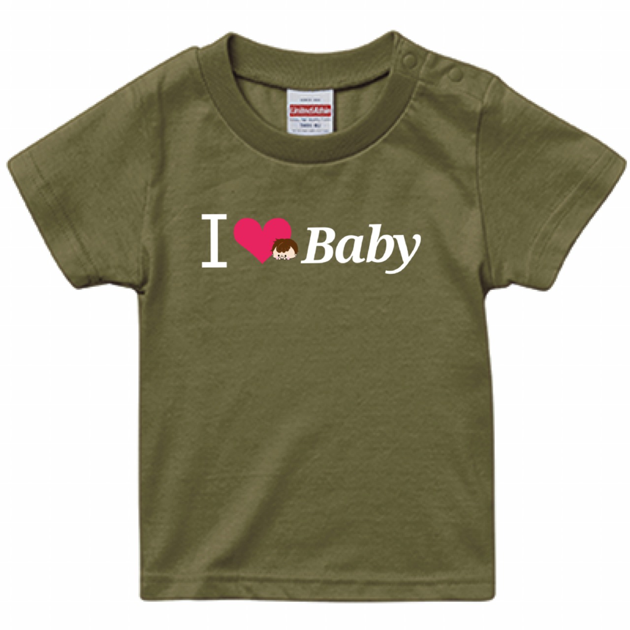 Boy♠I Love Baby♥Baby Tシャツ✵੯•`໒♥Light olive × White